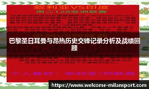 巴黎圣日耳曼与昂热历史交锋记录分析及战绩回顾